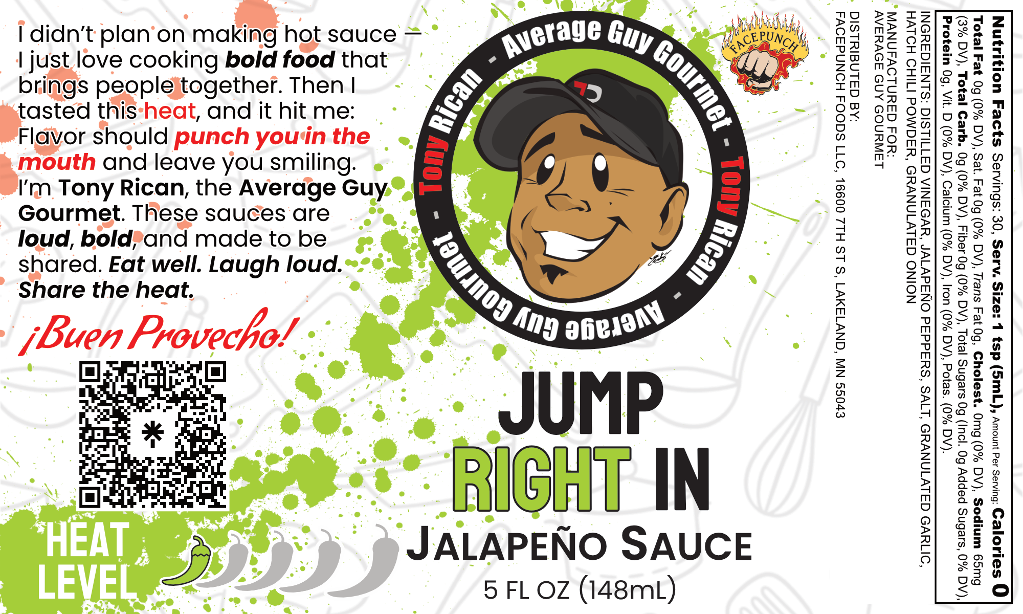 Get ready to dive into flavor! Jump Right In is my go-to green sauce when I want a little heat and a whole lot of awesome. This isn’t your average verde — we skipped the tomatillos and let fresh jalapeños, Hatch green chile powder, and bold spices do all the talking.